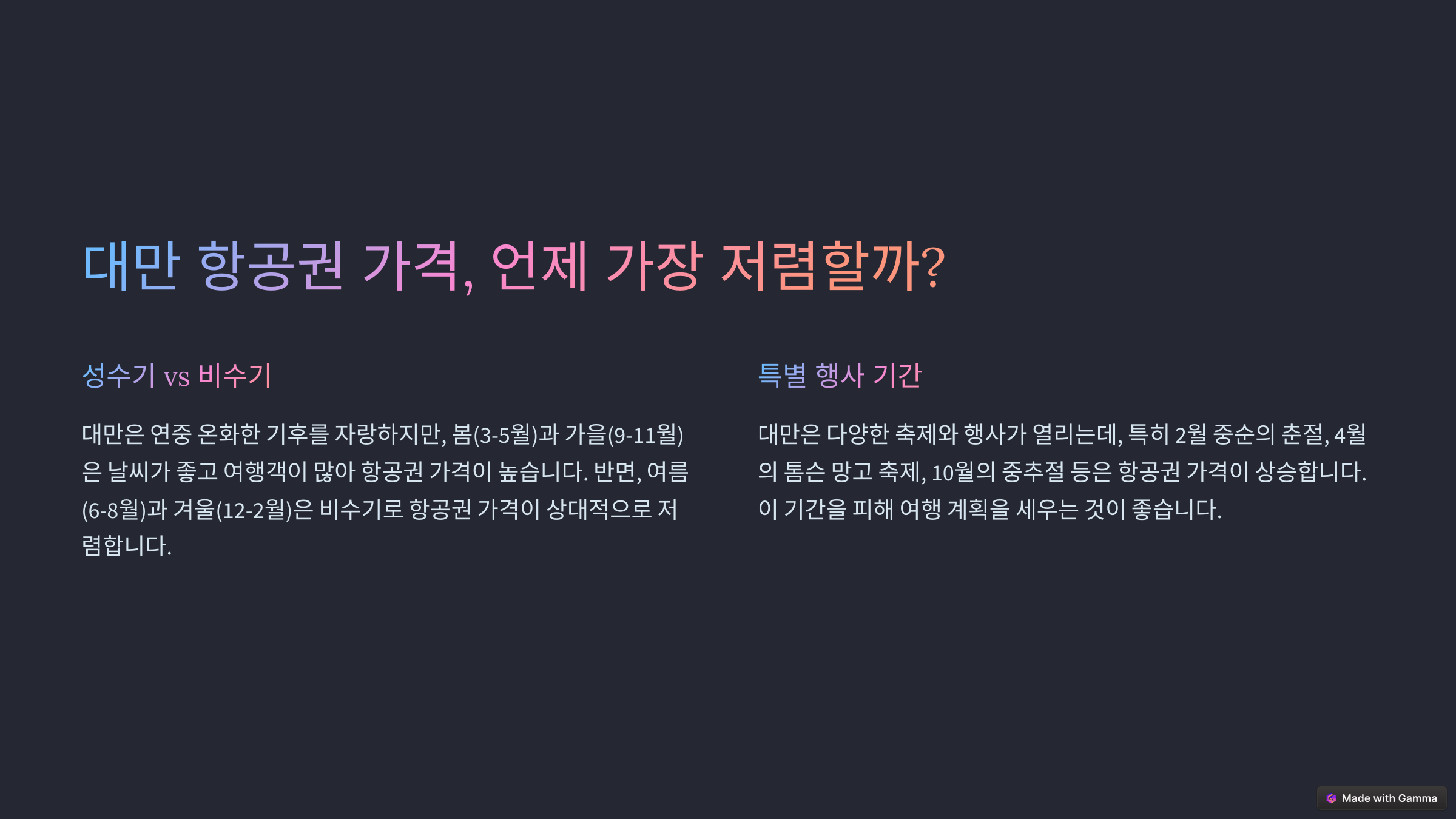 4️⃣ 대만 항공권은 언제 사는 게 가장 저렴한가요?