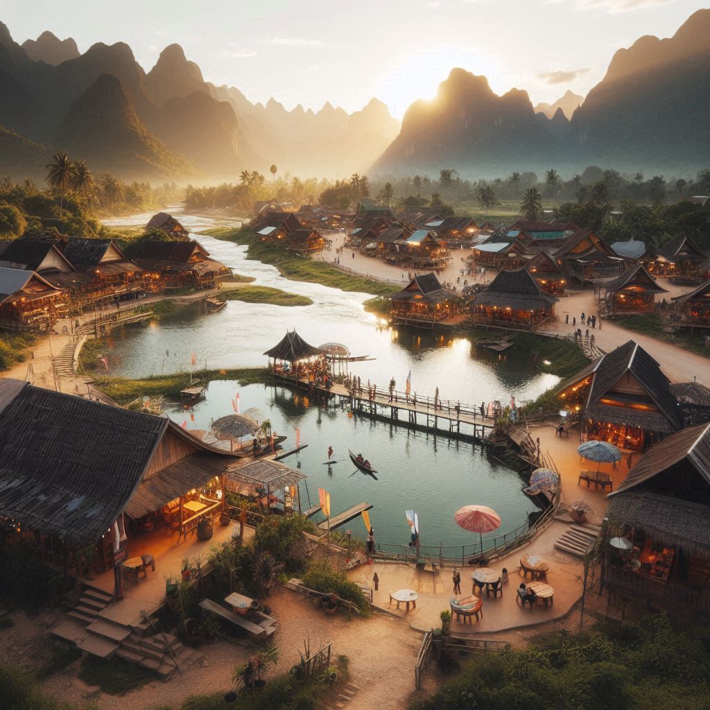 방비엥은 저녁 하늘이 정말 아름답다. 특히 **선셋 포인트(Pha Tam Cave 뷰포인트)**는 붉게 물든 하늘과 강, 산이 어우러져 인생 사진을 남길 수 있는 장소다. 이곳은 도보나 전동 바이크로 쉽게 접근할 수 있으며, 저녁 6시 전에는 도착해야 한다.