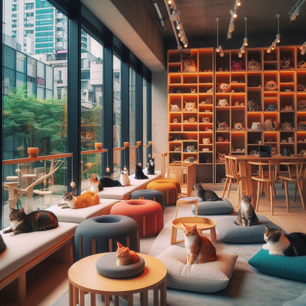 - 운영 방식: 시간당 요금제로 운영되며 음료와 스낵을 별도로 주문할 수 있습니다. 고양이들을 위한 놀이터가 잘 마련되어 있어 활기찬 분위기를 자아냅니다.
